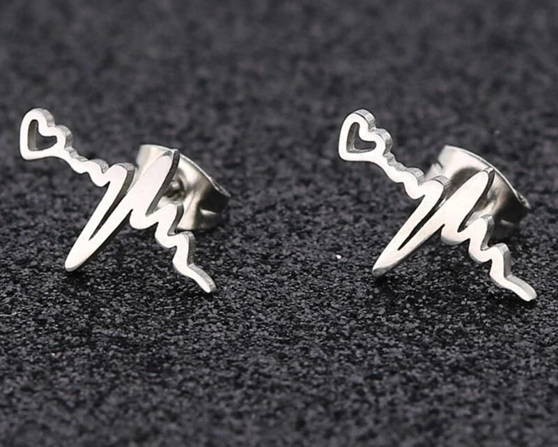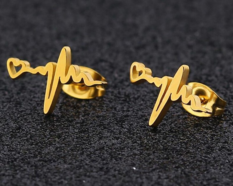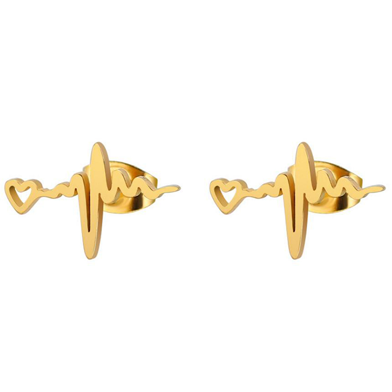 Shuangshuo Fashion Gold Heartbeat Stud Earrings ECG Medical Stainless Steel Jewelry For Nurse Doctor Cute Women Earrings bijoux